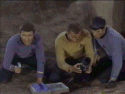 When firmly seated on the ground, range and azimuth can be adjusted using a control on the side of the weapon. As with a mortar, the grenade is simply dropped down the tube to prime and fire. Impressions from the episode suggest the grenade has a blast radius of at least 200 yards. Captain Kirk fired a single grenade to destroy a Gorn landing party located on high ground about 1200 yards away - an officer present commented that using a projectile of such a yield at this short a range was risky. So are we to assume that Photon Grenades are mini-photon torpedoes, containing an antimatter warhead? I'd hesitate to go that far: while the carrier for the grenades might contain a power source to maintain AM confinement, it seems risky for a ground weapon. Far safer (!) to think of the explosive as being nuclear in origin. One note: curious resemblance of the grenades to the blue bombs used by the Gungans in Star Wars: The Phantom Menace! |